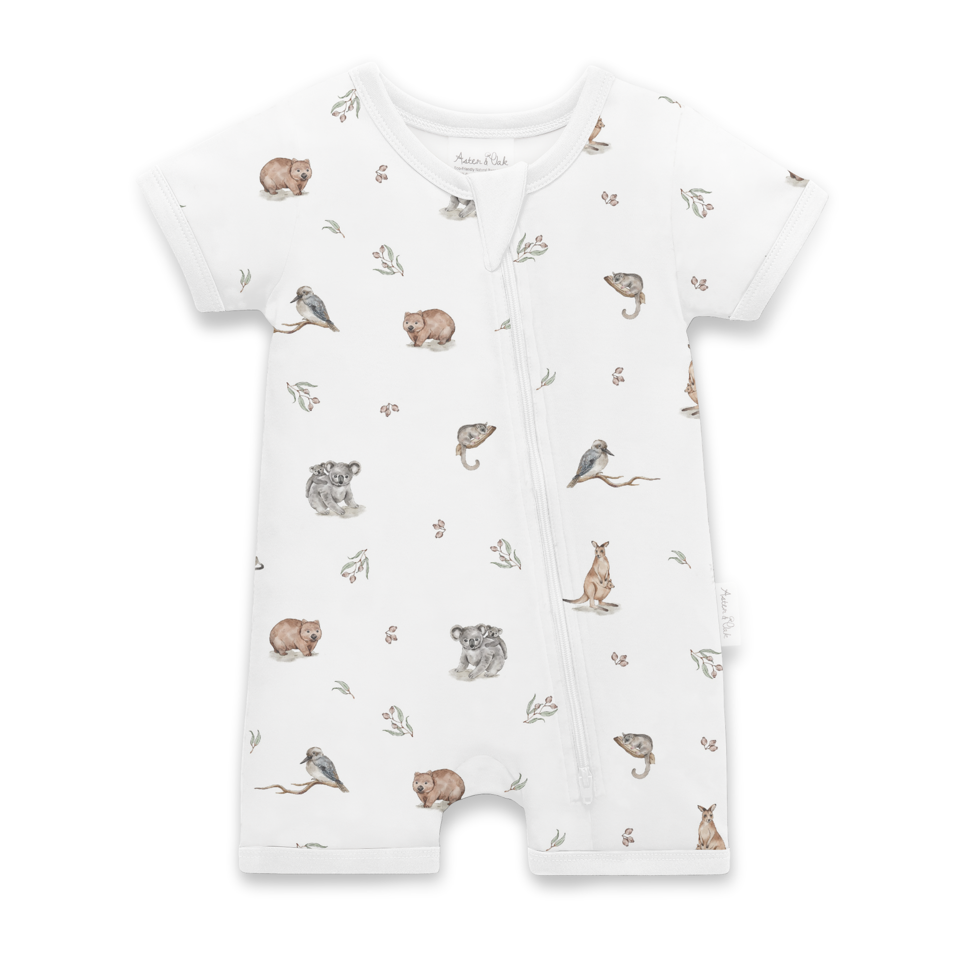 Aster and Oak - Native Animals Short Sleeve Zip Romper