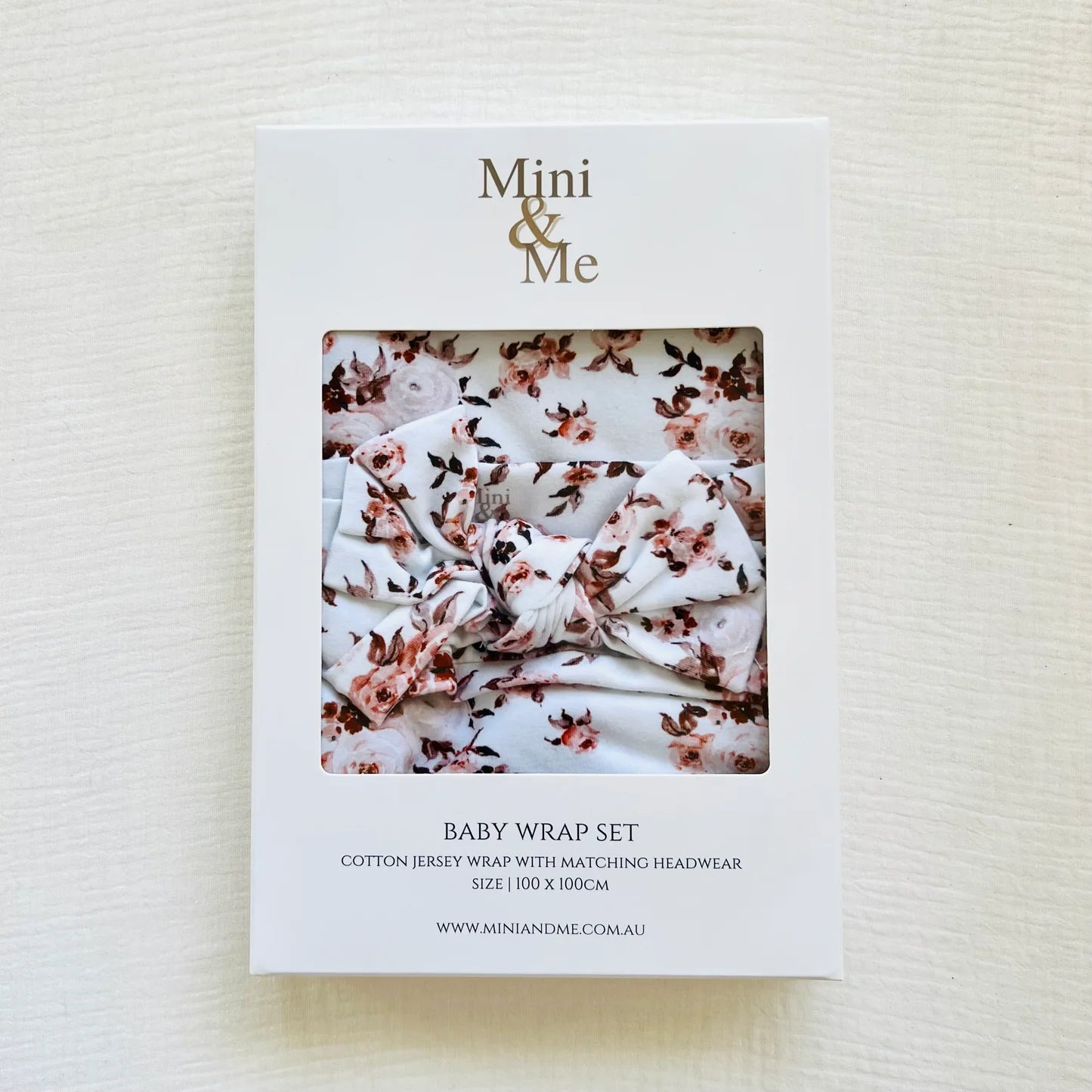 The set includes a matching topknot beanie, making it an adorable addition to your newborn's birth announcement. With its generous 120 x 120cm size, this wrap is versatile enough for swaddling, tummy time, pram rides, and more.