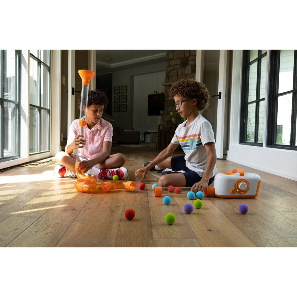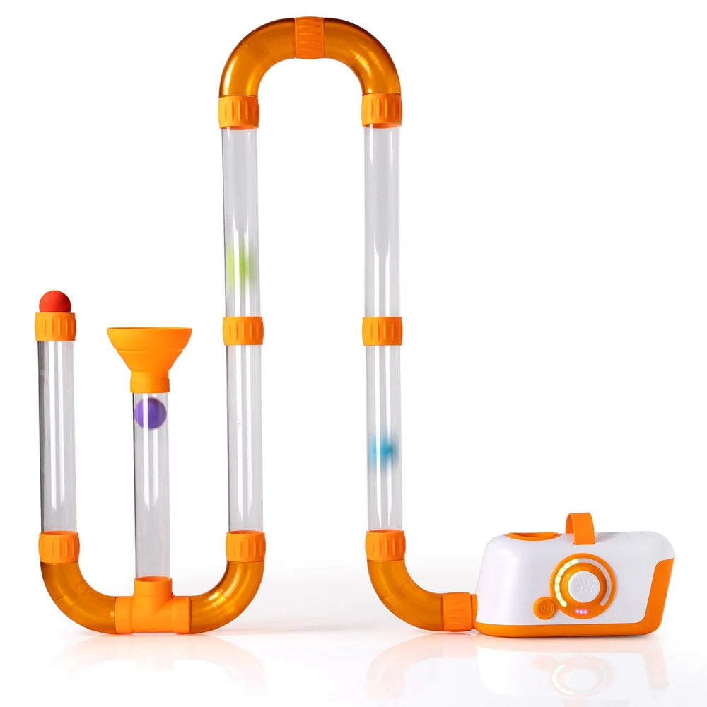 Create loops and swirls. Weave them under tables and over desks. Then, switch on the fan and let the experimentation begin...Can you make the foam balls leap from one tube to the next, or hover in mid-air, or go around and around in an endless cycle? Or, what happens when you set it to low speed vs high speed? What happens when you load the tubes with all the balls, then turn it all the way up?With hours of runtime and loads of balls, tubes, connectors, and accessories included, kids (and adults) will never want to stop exploring!