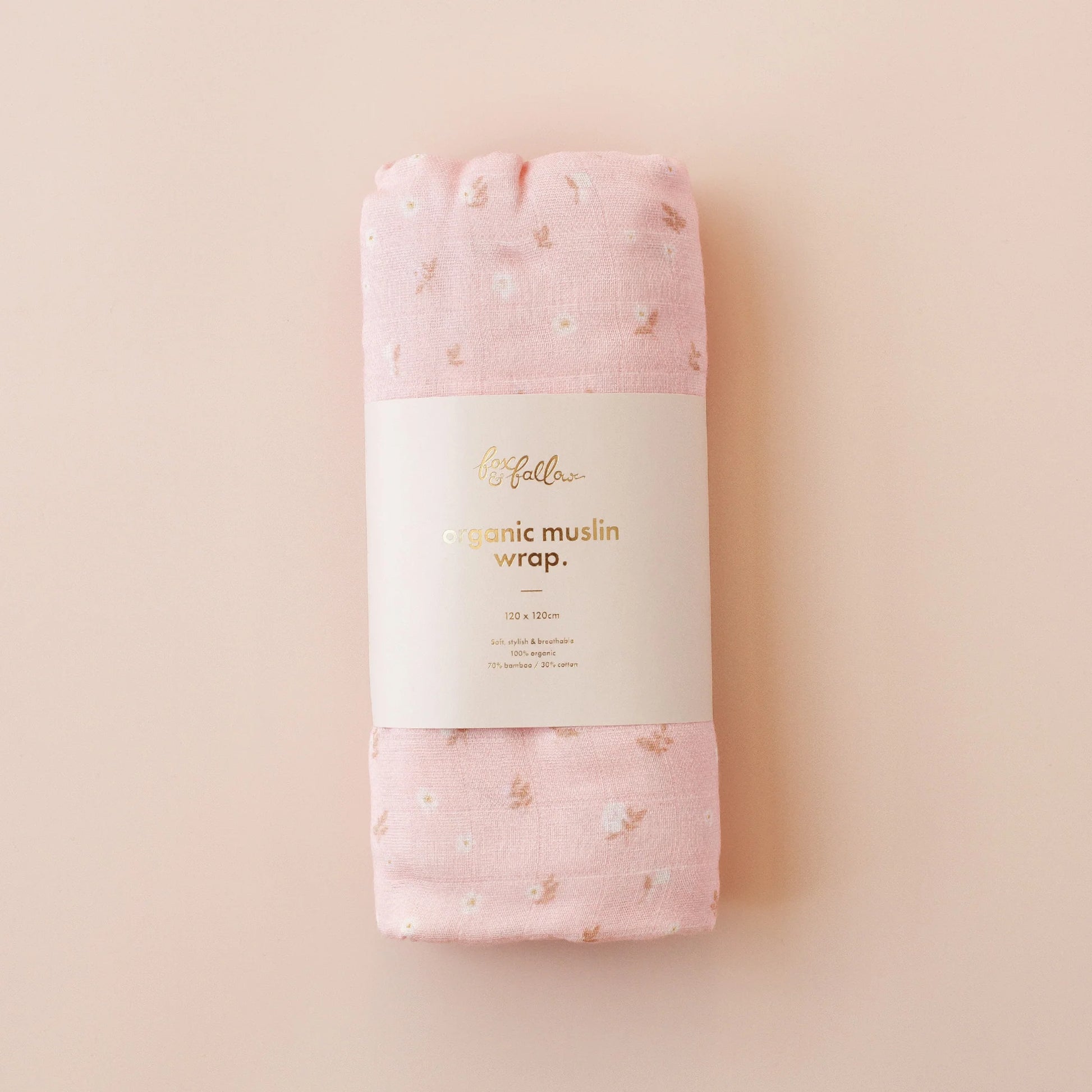 Fox & Fallow - Dusty Roses Organic Muslin Wrap Swaddle