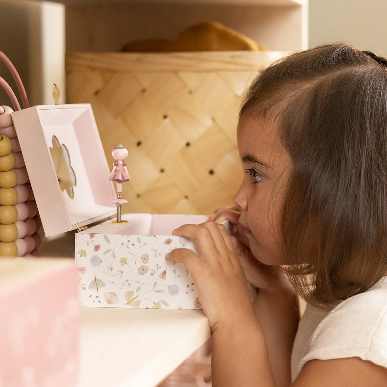 Introducing the enchanting Little Dutch Musical Jewellery Box featuring the lovely ballerina, Rosa! This beautifully crafted jewellery box is more than just a storage space; it’s a magical experience for your little one. Inside, ballerina Rosa eagerly awaits her moment to twirl and spin to a sweet lullaby, bringing a touch of ballet charm to your child’s room. The jewellery box is adorned with our signature Flowers & Butterflies design, adding a whimsical touch. Perfect for storing jewellery and cherished keepsakes, this delightful piece will capture hearts and inspire dreams.