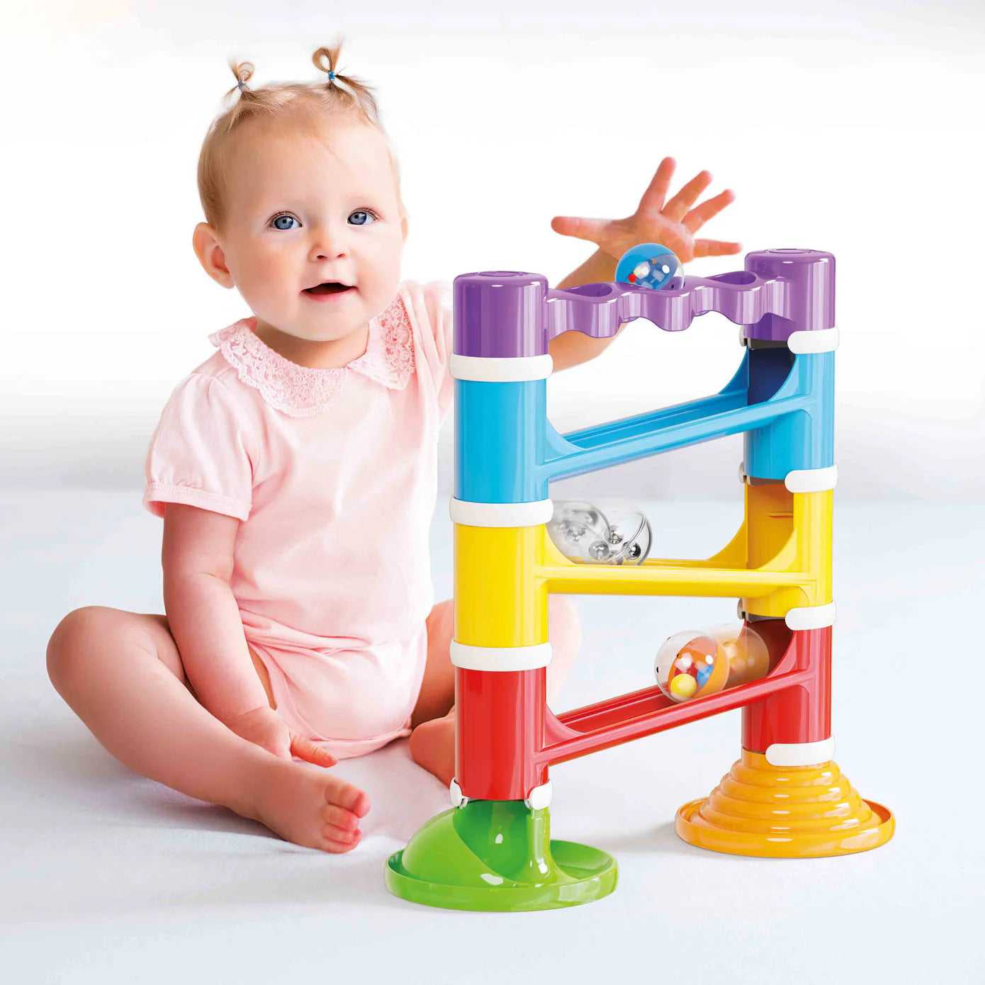 Experience endless fun with Migoga Tower Sounds! This hilarious track comes with 3 large sound balls that make a delightful noise as they roll down the tower. Simply push the balls with your hand and watch in awe as they create a symphony of sounds. Add some excitement to your day with Migoga Tower Sounds!