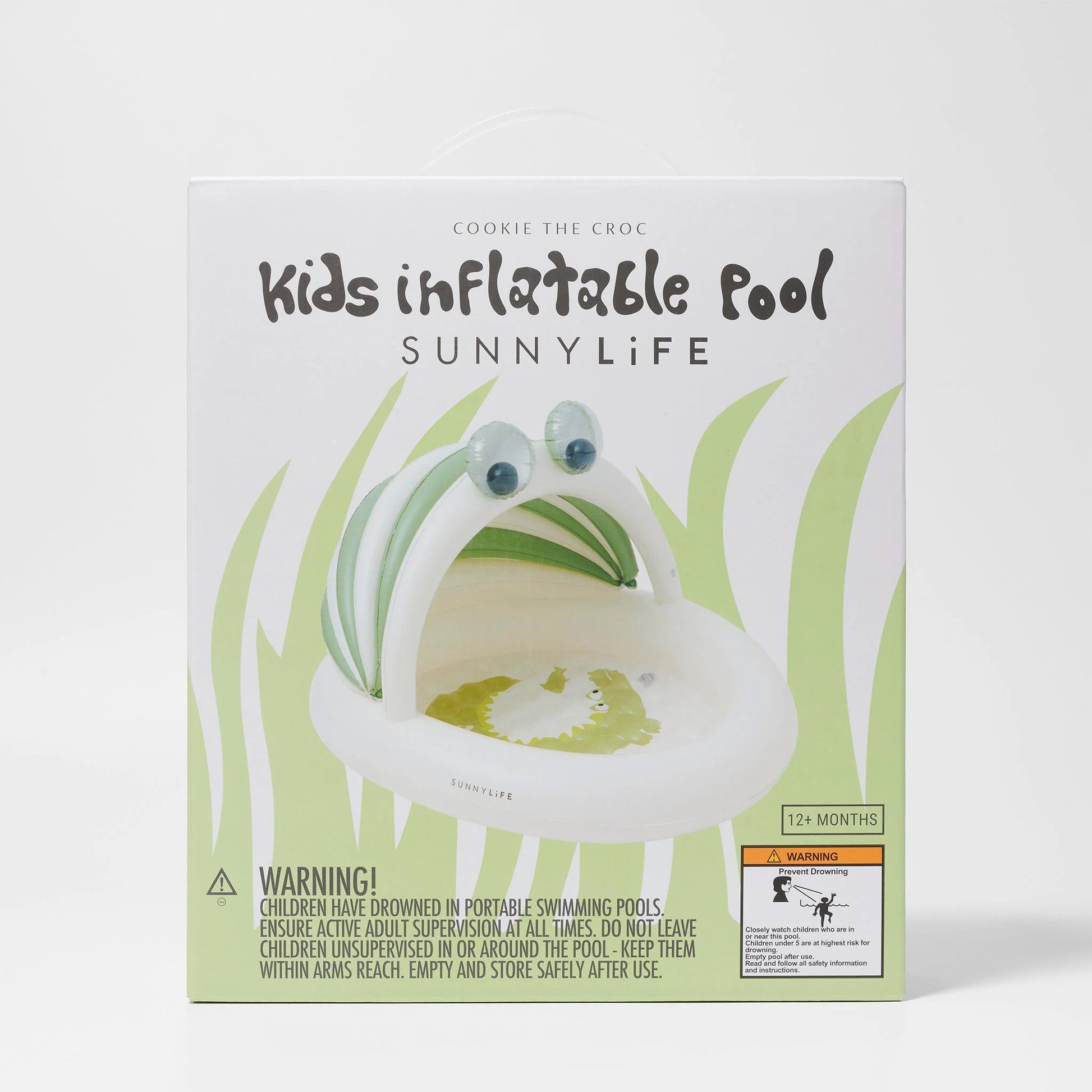 No pool? No problem, just add water and have some splish-splashing fun. The Cookie the Croc Kids Pool is ultra-adorable and comfortable for little ones to explore waterplay. Suitable for smaller children and designed with an inflatable built-in sunshade for sun protection and an extra-cosy padded floor for added comfort, little kids will love their pool play. Experience the best of summer with its 3D googly eyes, spikes and cool khaki green and white colourway.